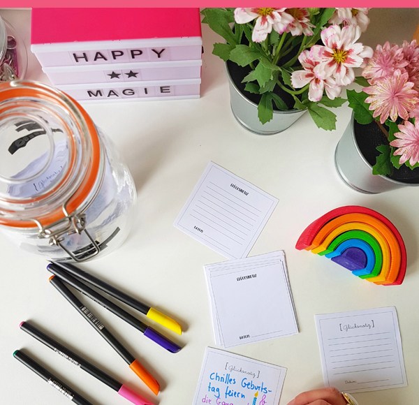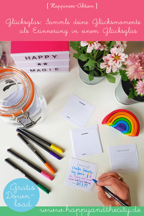 Ich wünsche dir viel Freude! Und wenn du magst, freue ich mich total, wenn du deine Glücksnotizen zeigst. Nutz doch bei Instagram den Hashtag #happinessglas – dann können wir alle an deinem Glück teilhaben.